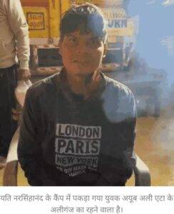 यति नरसिंहानंद के कैंप में पकड़ा गया युवक अयूब अली एटा के अलीगंज का रहने वाला है।