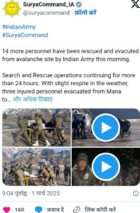 माणा हिमस्खलन के दूसरे दिन खोज अभियान शुरू, आज 14, कुल 47 लोग बचाए गए, प्रधानमंत्री मोदी ने जानी स्थिति – CHAMOLI AAVALANCHE बर्फ से ढंकी हनुमान चट्टी से बदरीनाथ तक 20 किमी सड़क , पैदल आवागमन हुआ बहुत कठिन, सभी अस्पताल हाई अलर्ट पर