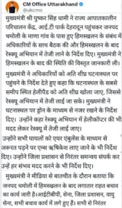 मुख्यमंत्री ने राहत और बचाव कार्य को राज्य आपदा कंट्रोल रूप में उच्चस्तरीय बैठक भी की.गढ़वाल सेक्टर में बीआरओ कैंप के पास हिमस्खलन हुआ है.