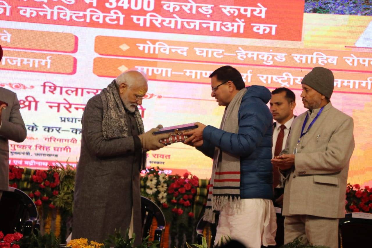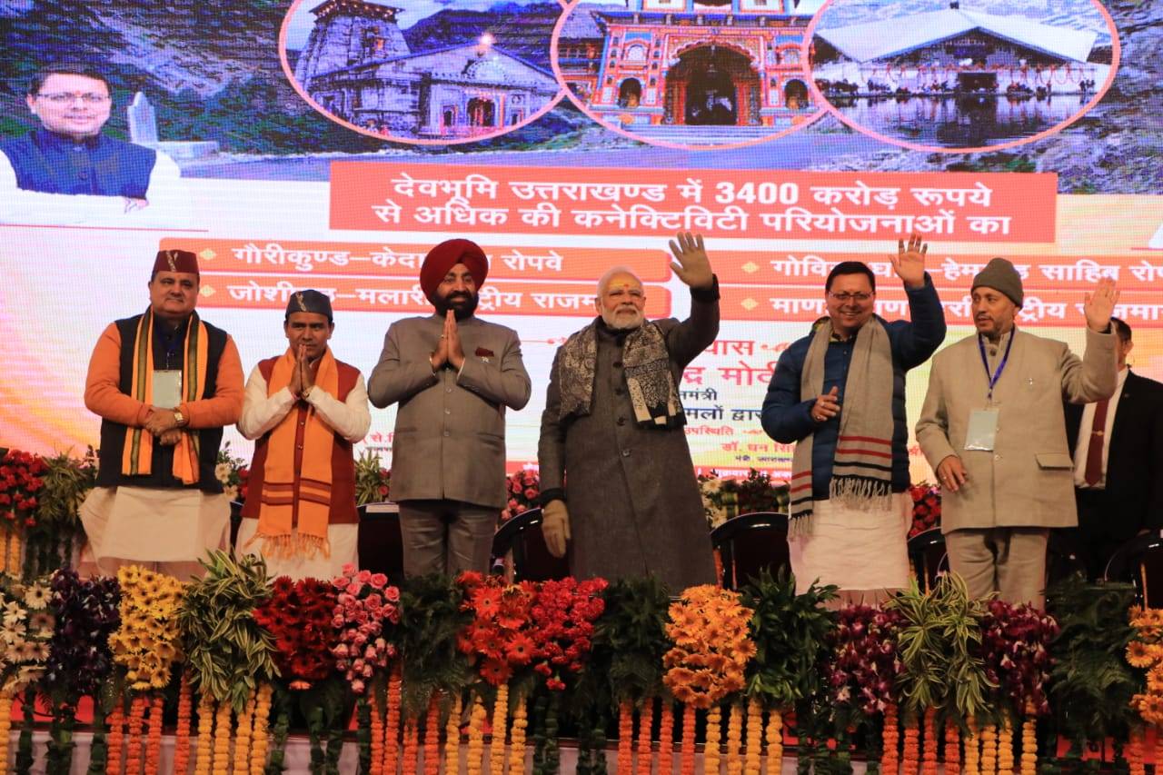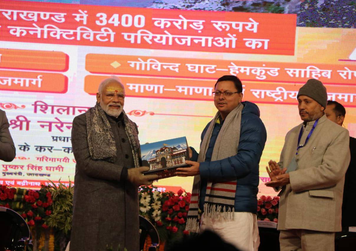 प्रधानमंत्री मोदी शुक्रवार को दो दिनी दौरे पर उत्तराखंड पहुंचे। पहले केदारनाथ धाम और फिर बदरीनाथ धाम में पूजा-अर्चना के बाद उन्होंने 3400 करोड़ की कनेक्टिविटी योजनाओं की आधारशिला रखी। इनमें 1267 करोड़ की 9.7 किमी लंबी गौरीकुंड-केदारनाथ रोपवे, 1163 करोड़ लागत से हेमकुंड साहिब रोपवे, लगभग 1000 करोड़ की दो सड़क परियोजनाएं माणा-माणापास और जोशीमठ-मलारी सम्मिलित हैं। उन्होंने बदरीनाथ में मास्टर प्लान के अंतर्गत चल रहे कार्यों की प्रगति की समीक्षा की।
