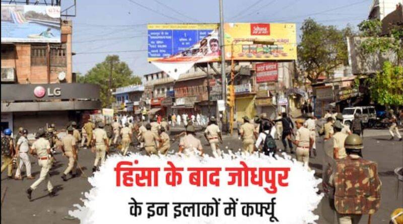 जोधपुर चार मई। राजस्थान के जोधपुर में झंडा फहराने को लेकर दो समूहों के बीच हिंसक झड़प ने ईद पर हंगामे का बड़ा रूप अख्तियार कर लिया। हिंसा में पांच पुलिसकर्मी सहित 16 लोग जख्मी हो गए। जिसके बाद पुलिस (Rajasthan Police) ने भी सख्ती दिखाई, लाठीचार्ज और आंसू गैस के गोले छोड़े गए। तनावपूर्ण हालात देख 10 थाना क्षेत्रों में कर्फ्यू (Curfew in Jodhpur) लगाया गया है। अफवाहें रोकने को जिले में इंटरनेट बंद कर दिया गया है।