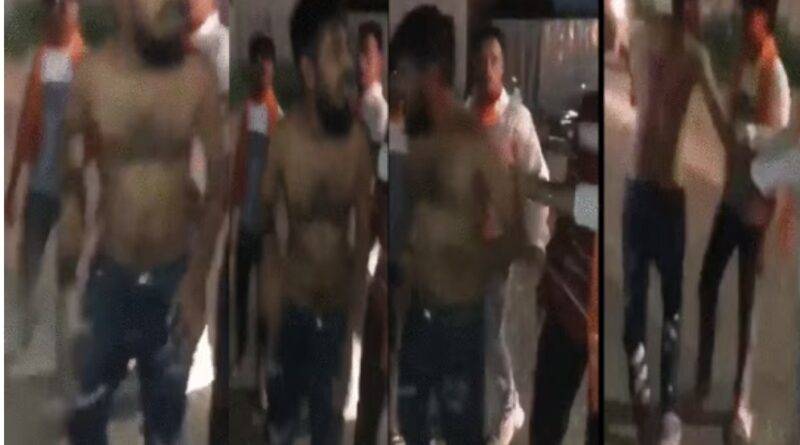 मुस्लिम युवक को पीटते बजरंग दल के कार्यकर्ता