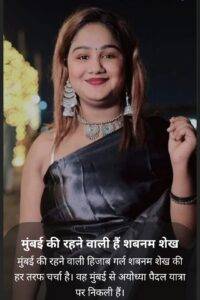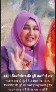 मुंबई के नालासोपारा की रहने वाली 21 वर्षीय शबनम शेख ने 28 दिनों पहले अयोध्या धाम की यात्रा शुरू की थी। शबनम शेख का कहना है कि वह एवं उनका पूरा परिवार भगवान श्री राम का भक्त है। ऐसा नहीं है कि मैं यह सब सिर्फ ट्रेंड में रहने को कर रही हूं।