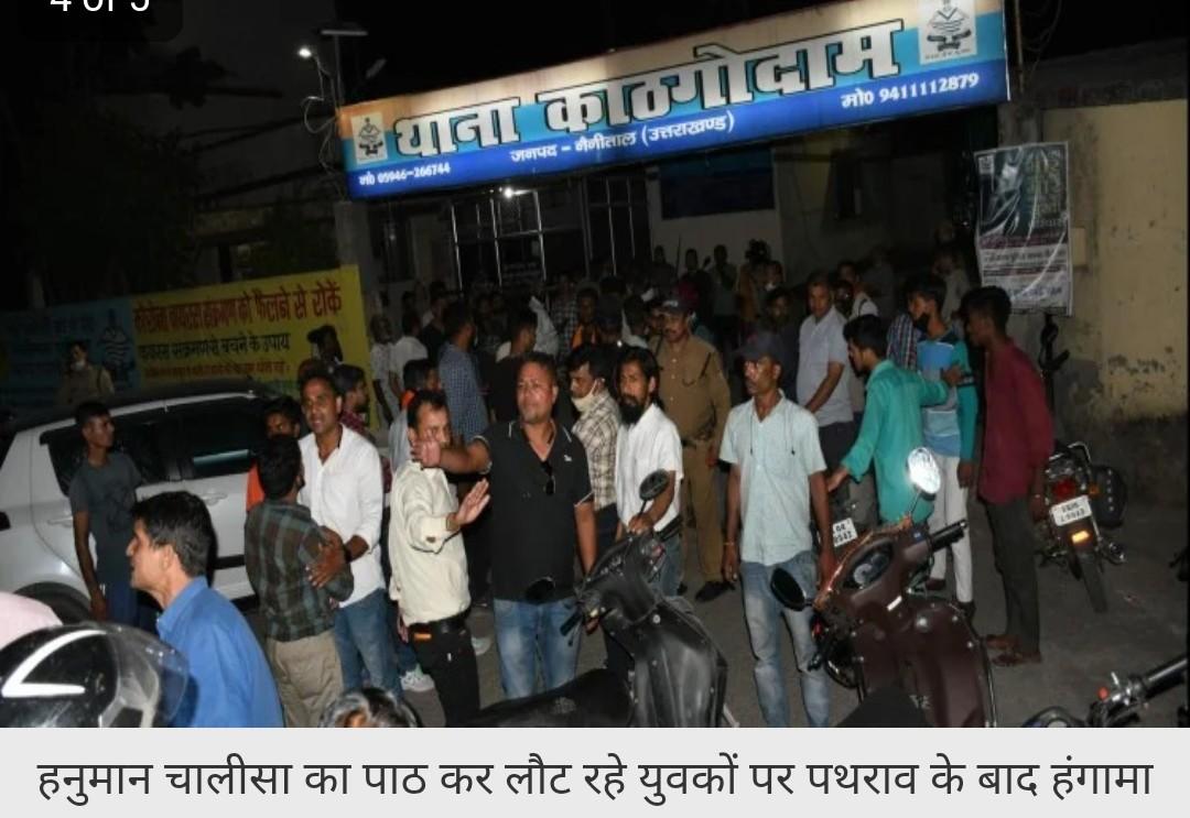 काठगोदाम थाना क्षेत्र में मंदिर से हनुमान चालीसा का पाठ करके लौट रहे शीशमहल इलाके के तीन युवकों पर कुछ लोगों के पथराव करने से हंगामा हो गया।