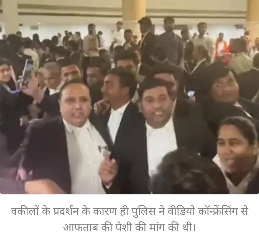 वकीलों के प्रदर्शन के कारण ही पुलिस ने वीडियो कॉन्फ्रेंसिंग से आफताब की पेशी की मांग की थी।