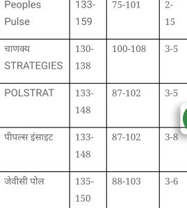 अभी तक आए एग्जिट पोल के नतीजे इस प्रकार हैं-