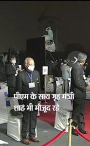 इस दौरान गृह मंत्री अमित शाह भी मौजूद रहे। मोदी ने कहा कि आजादी के बाद देश की संस्कृति और संस्कारों के साथ ही अनेक महान व्यक्तित्वों के योगदान को मिटाया जाना दुर्भाग्यपूर्ण था। आज आजादी के दशकों बाद देश उन गलतियों को डंके की चोट पर सुधार रहा है।