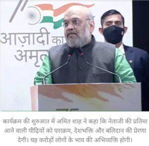 कार्यक्रम की शुरुआत में अमित शाह ने कहा कि नेताजी की प्रतिमा आने वाली पीढ़ियों को पराक्रम, देशभक्ति और बलिदान की प्रेरणा देगी। यह करोड़ों लोगों के भाव की अभिव्यक्ति होगी।