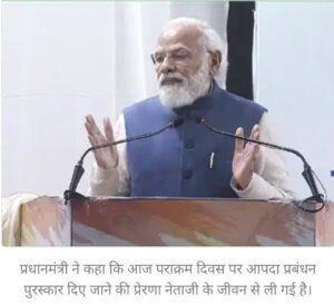 प्रधानमंत्री ने कहा कि आज पराक्रम दिवस पर आपदा प्रबंधन पुरस्कार दिए जाने की प्रेरणा नेताजी के जीवन से ली गई है।