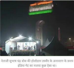 नेताजी सुभाष चंद्र बोस की होलोग्राम तस्वीर के अनावरण के समय इंडिया गेट का नजारा कुछ ऐसा था।