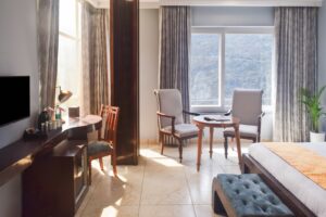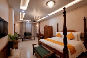 यहाँ ठहरने के लिए आरामदायक कमरे, निजी बालकनी वाले सुइट्स और बाथटब से सुसज्जित कमरे हैं, जो हिमालय की सुंदर घाटियों के मनोरम दृश्य पेश करते हैं। मेहमान ‘वाटिका’ रेस्टोरेंट में क्षेत्रीय शुद्ध शाकाहारी भोजन का आनंद ले सकते हैं, जिसमें विशेष जैन भोजन भी शामिल है। इसके अलावा, कैफे लाउंज ‘चाय एंड यू’ में भी आराम करने का विकल्प है।