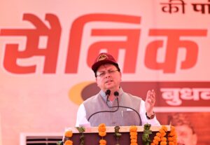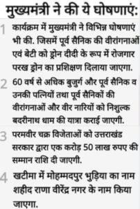 मुख्यमंत्री पुष्कर सिंह धामी ने उधम सिंह नगर के खटीमा में गौरव सैनिक सम्मान समारोह कार्यक्रम में प्रतिभाग किया