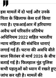 नूंह में ‘लव जिहाद’ का आरोप, शादी का झांसा देकर पहले दुष्कर्म और फिर धर्म परिवर्तन का दबाव, आरोपी गिरफ्तार