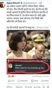 कैप्टन अंशुमन सिंह गत वर्ष अपने साथियों की जान बचाने की कोशिश में सियाचिन में वीरगति को प्राप्त हो गए थे। दो दिन पूर्व ही उन्हें ‘कीर्ति चक्र’ प्रदान किया गया है। उनकी तरफ से उनकी धर्मपत्नी और मां ने राष्ट्रपति से इस सम्मान को ग्रहण किया। इस अवसर पर अंशुमन सिंह की धर्म पत्नी का बयान और वीडियो मीडिया की सुर्खियों में आ गए। इस पर सोशल मीडिया पर टिप्पणी करते हुए एक यूजर ने अभद्र बात कह दी, जो सोशल मीडिया में चर्चा में आ गया।
