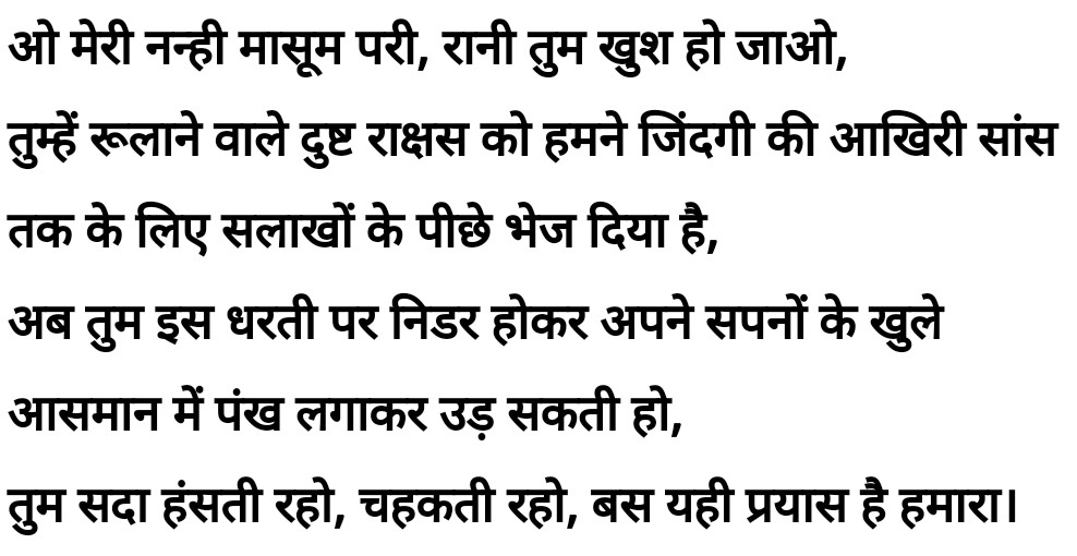 विशिष्ट न्यायाधीश दीपक दुबे ने समाज को भावुक करने वाली कविता भी फैसले के आदेश की काॅपी में लिखी। 43 साल के दरिंदे मौलवी अब्दुल रहीम को अंतिम सांस तक जेल की सजा सुनाने के साथ ही अभियुक्त पर कोर्ट ने 1 लाख रुपये का अर्थदंड भी लगाया है।