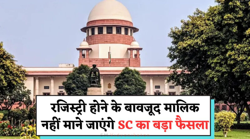 सुप्रीम कोर्ट ने मालिकाना हक को लेकर बड़ा फैसला दिया है। कोर्ट का कहना है कि आप सिर्फ इसलिए संपत्ति के मालिक नही हो सकते हैं, क्योंकि आपने उसे पंजीकृत करा लिया है।