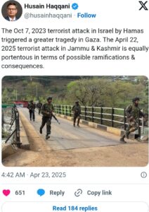 2016 से भारत दो बड़े आतंकी हमलों के बाद सीमा पार जाकर कार्रवाई कर चुका है। पहले उरी हमले के बाद पीओके में सर्जिकल स्ट्राइक की गई और फिर बालाकोट में एयर स्ट्राइक। नागरिकों पर हुए इस हमले के बाद भारत पर फिर से कार्रवाई करने का बहुत ज्यादा दबाव है। हमले का समय बहुत महत्वपूर्ण है। पहलगाम हमला अमेरिकी उपराष्ट्रपति जेडी वेंस की भारत यात्रा और प्रधानमंत्री मोदी के सऊदी अरब दौरे के समय हुआ। इससे लगता है कि हमलावरों का उद्देश्य कश्मीर पर दुनिया का ध्यान खींचना था। पाकिस्तान के पूर्व राजदूत हुसैन हक्कानी ने इस हमले की तुलना हमास के 7 अक्टूबर के हमले से की है। उन्होंने इसके गंभीर परिणाम होने की चेतावनी दी है।
