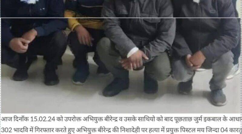 आज 15 फरवरी को बीरेन्द्र व उसके साथियों को पूछताछ में हत्या स्वीकार कर लेने पर धारा 302 भारतीय दंड विधान में गिरफ्तार करते हुए अभियुक्त बीरेन्द्र के बताए हत्या में प्रयुक्त पिस्टल मय जिन्दा 04 कारतूस ढूंढ लिये गये । आरोपित प्रियंका पुलिस पकड़ से बाहर है।