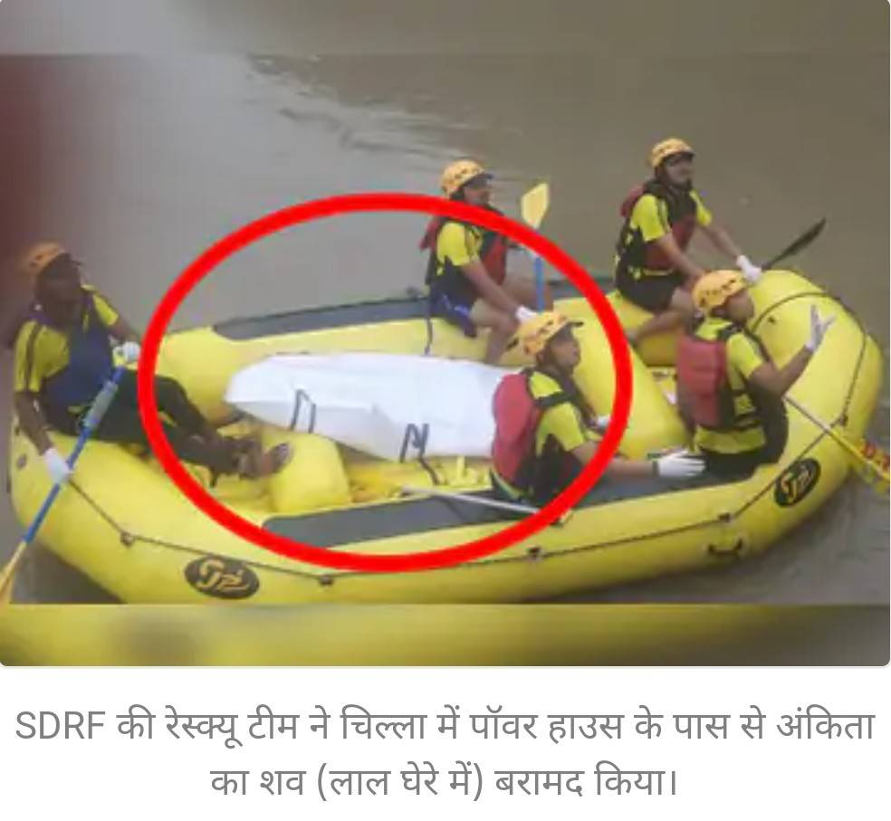 SDRF की रेस्क्यू टीम ने चिल्ला में पॉवर हाउस के पास से अंकिता का शव (लाल घेरे में) बरामद किया।
