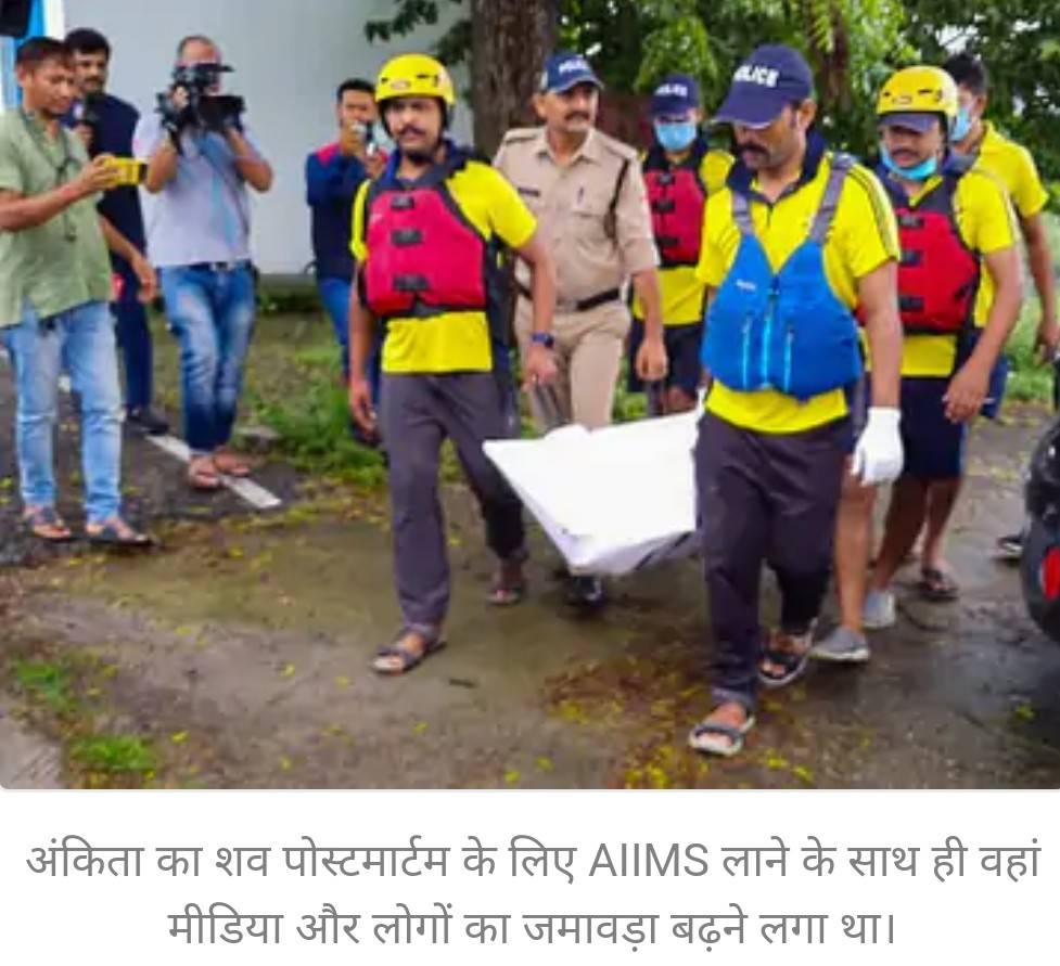 अंकिता भंडारी मर्डर केस (ankita bhandari murder case) में पूरे प्रदेश में आक्रोश है. अंकिता का शव मिलने के बाद लोग आरोपितों को फांसी की मांग कर रहे हैं.अंकिता भंडारी के शव का ऋषिकेश एम्स में पोस्टमॉर्टम हुआ.रिपोर्ट जल्द ही अस्पताल प्रशासन एसआईटी (postmortem report of anikta bhandari) को सौंपेगा. पुलिस ने शव परिजनों को सौंप दिया है. श्रीनगर गढ़वाल के आईटीआई घाट में अंकिता का दाह संस्कार होगा. एहतियातन स्थानीय प्रशासन ने आईआईटी घाट पर भारी संख्या में पुलिस बल तैनात किया है. आज रात शव बेस अस्पताल श्रीनगर की मोर्चरी में रखा है और सुबह 8 बजे अंकिता का अंतिम संस्कार होगा.