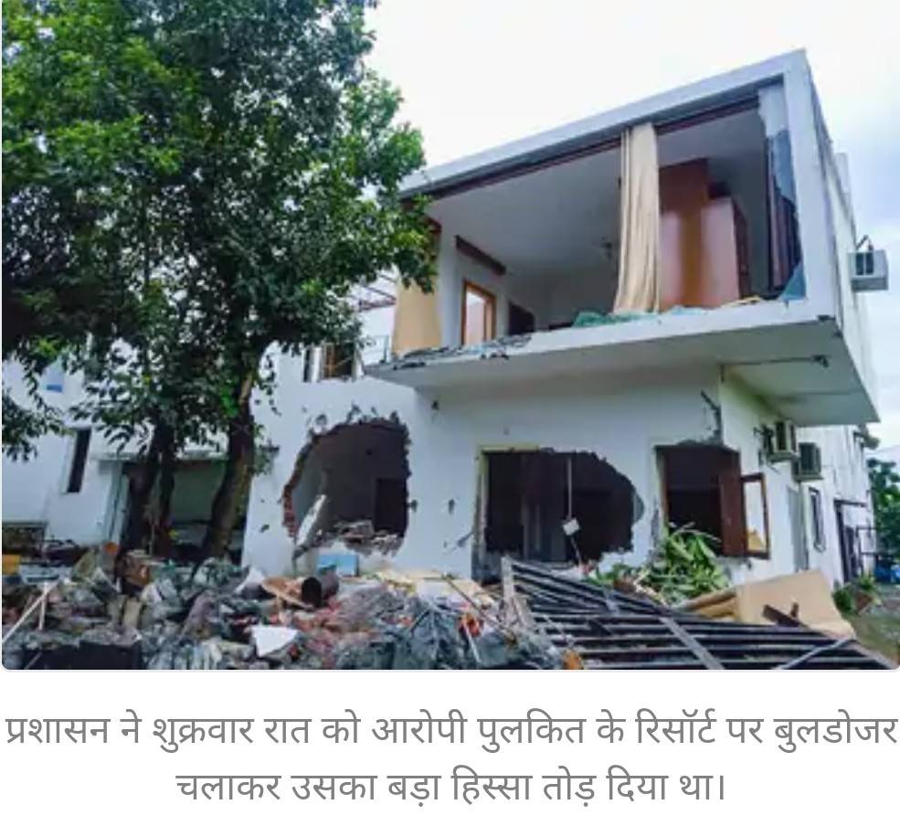 अंकिता भंडारी की हत्या के आरोपित भाजपा नेता के बेटे का रिसॉर्ट प्रशासन ने तोड़ दिया। इसके बाद लोगों ने उसमें आग लगा दी।