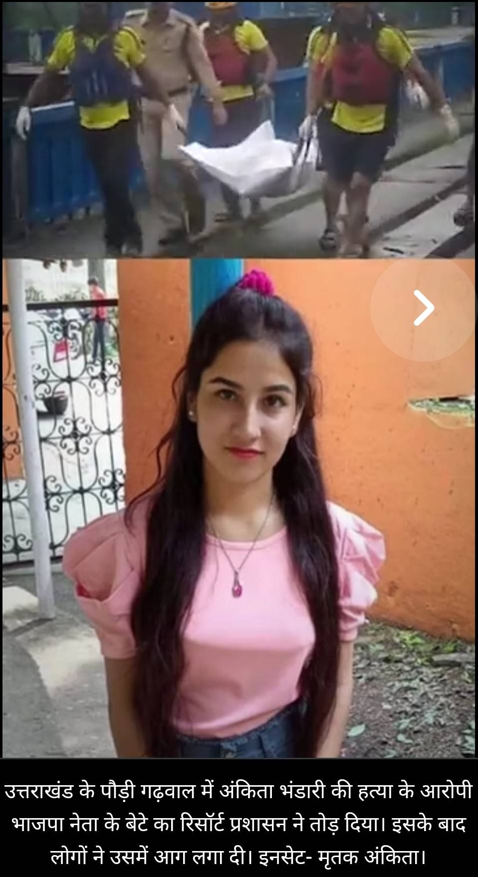 19 साल की अंकिता भंडारी पौड़ी गढ़वाल जिले के यमकेश्वर विधानसभा इलाके के रिजॉर्ट में रिसेप्शनिस्ट थी. रिजॉर्ट भाजपा के बड़े नेता विनोद आर्य का है,जिसका संचालन उनका छोटा बेटा पुलकित आर्य करता था.वहीं विनोद आर्य का बड़ा बेटा अंकित आर्य भाजपा सरकार में पिछड़ा वर्ग आयोग का उपाध्यक्ष था,जिसकी धामी सरकार ने आज आयोग से छुट्टी कर दी. भाजपा ने भी मुख्य आरोपित पुलकित आर्य के पिता विनोद आर्य और उसके भाई अंकित आर्य को पार्टी से निष्कासित कर दिया है.
