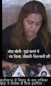 लोकसभा चुनाव के बीच कांग्रेस को झटके पर झटके लग रहे हैं। छत्तीसगढ़ कांग्रेस की नेता राधिका खेड़ा ने पार्टी से त्यागपत्र दे दिया। उन्होंने आरोप लगाया कि पार्टी के नेता सुशील आनंद शुक्ला और उनके दो साथियों ने उनसे अभद्रता की कोशिश की। इतना ही नहीं, जब उन्होंने इसकी शिकायत पार्टी शीर्ष नेताओं से की तो तब भी उन पर कोई एक्शन नहीं लिया गया।