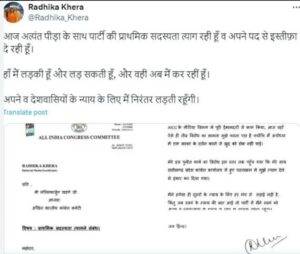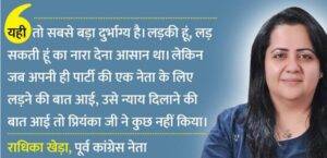 राधिका खेड़ा ने कहा पार्टी के शीर्ष नेताओं ने भी मेरी नहीं सुनी