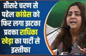लोकसभा चुनाव के बीच कांग्रेस को एक और झटका लगा है. छत्तीसगढ़ से कांग्रेस राष्ट्रीय प्रवक्ता राधिका खेड़ा ने त्यागपत्र देते हुए कहा कि आज अत्यंत पीड़ा के साथ पार्टी की प्राथमिक सदस्यता त्याग रही हूं.