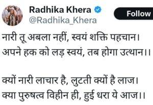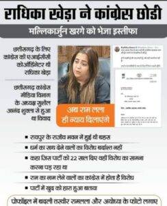 राधिका ने लिखा कि मैंने जिस पार्टी को अपने 22 साल से ज्यादा दिए. जहां NSUI से लेकर AICC के मीडिया विभाग में पूरी ईमानदारी से काम किया. आज वहां ऐसे ही तीव्र विरोध का सामना मुझे करना पड़ा है, क्योंकि मैं अयोध्या में रामलला के दर्शन करने से खुद को रोक नहीं पाई.