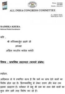 राधिका खेड़ा ने कांग्रेस अध्यक्ष मल्लिकार्जुन खड़गे को लिखे अपने इस्तीफे में कहा कि उन्हें पार्टी में आलोचना का सामना करना पड़ा, क्योंकि वह राम मंदिर और राम लला की मूर्ति के दर्शन करने से खुद को रोक नहीं सकीं । मैंने अपने जीवन के 22 साल इस पार्टी को समर्पित किए और एनएसयूआई से लेकर कांग्रेस के मीडिया विभाग तक पूरी ईमानदारी से काम किया। उसके बाद भी मुझे विरोध का सामना करना पड़ा क्योंकि मैं अयोध्या में राम का समर्थन करती हूं।