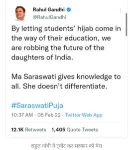 हिजाब विवाद में राहुल गांधी ने दी मां सरस्वती की दुहाई