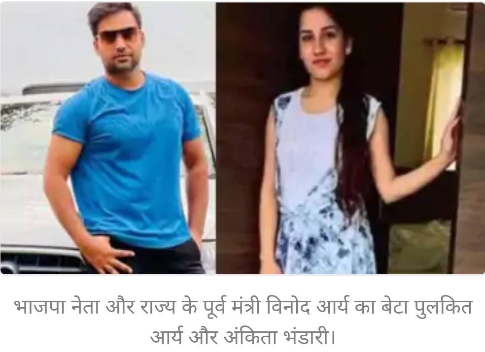 गंगाभोगपुर स्थित वनंतरा रिसॉर्ट से संदिग्ध परिस्थितियों में लापता रिसेप्शनिस्ट अंकिता भंडारी की हत्या कर उसका शव चीला नहर में फेंक दिया गया। मुख्य आरोपित हरिद्वार के भाजपा नेता का बेटा ही निकला।