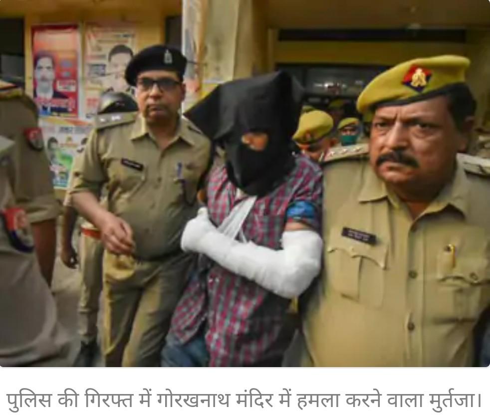 पुलिस की गिरफ्त में गोरखनाथ मंदिर में हमला करने वाला मुर्तजा।- फाइल
