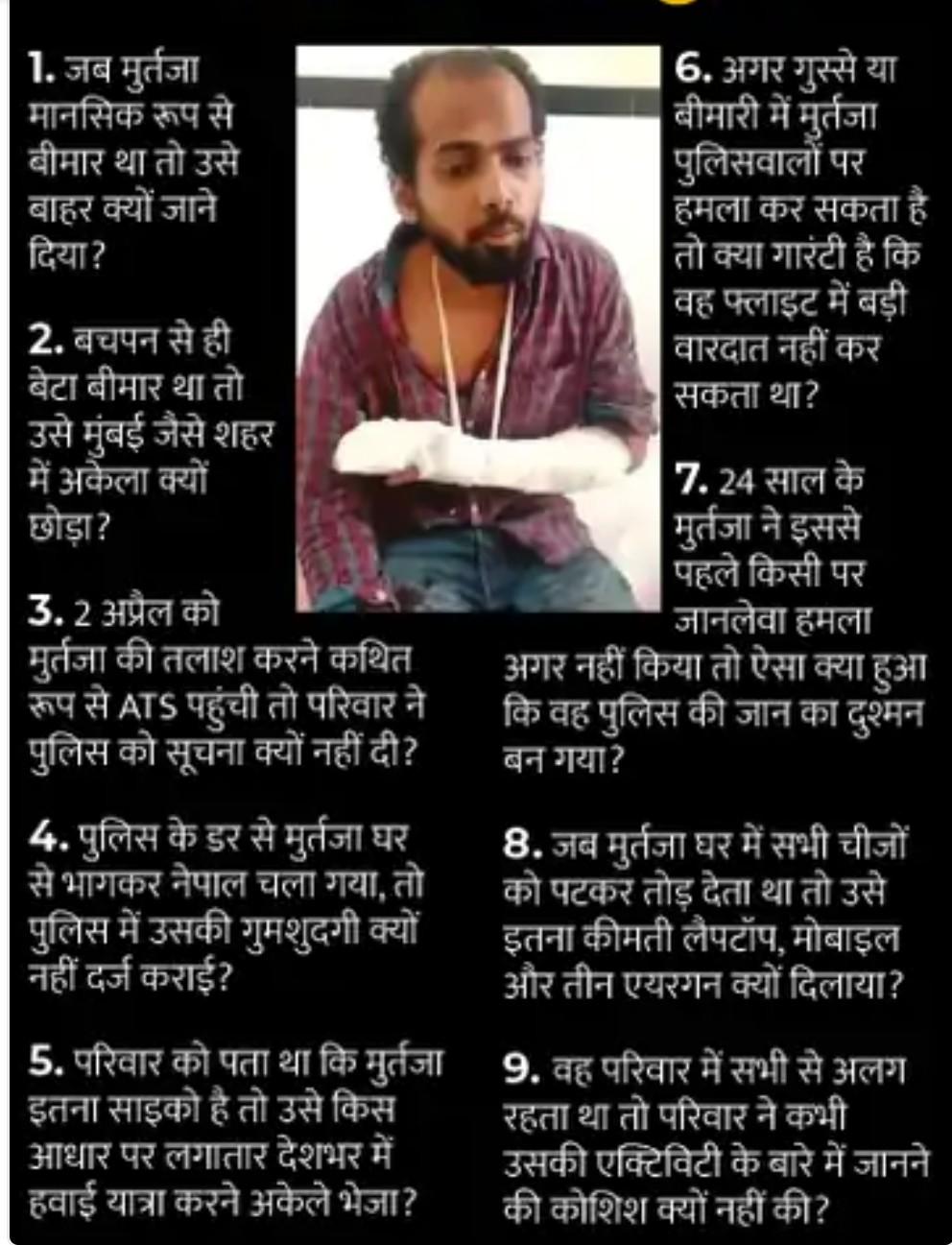ATS को अब तक पूछताछ में मुर्तजा के जवाबों से लगता है कि वह झूठ नहीं बोल रहा। इससे ATS को किसी अंतिम निर्णय तक पहुंचने में मुश्किल आ रही है।