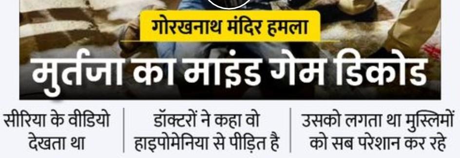गोरखपुर के गोरखनाथ मंदिर पर हमलावर अहमद अब्बास मुर्तजा से हिरासत में पूछताछ कर रही ATS को उसके इस्लामिक गुरु के बारे में जानकारी हाथ लगी है। मुर्तजा यमन-अमेरिकी इमाम अनवर अल हलाकी को गुरु मानता था। इस्लामिक अवेकिंग फोरम पर इस्लाम से जुड़ी बातें सुन सवाल पूछता था। उसके लैपटॉप से सीरिया और ISIS के हमले के कई वीडियो मिले हैं।