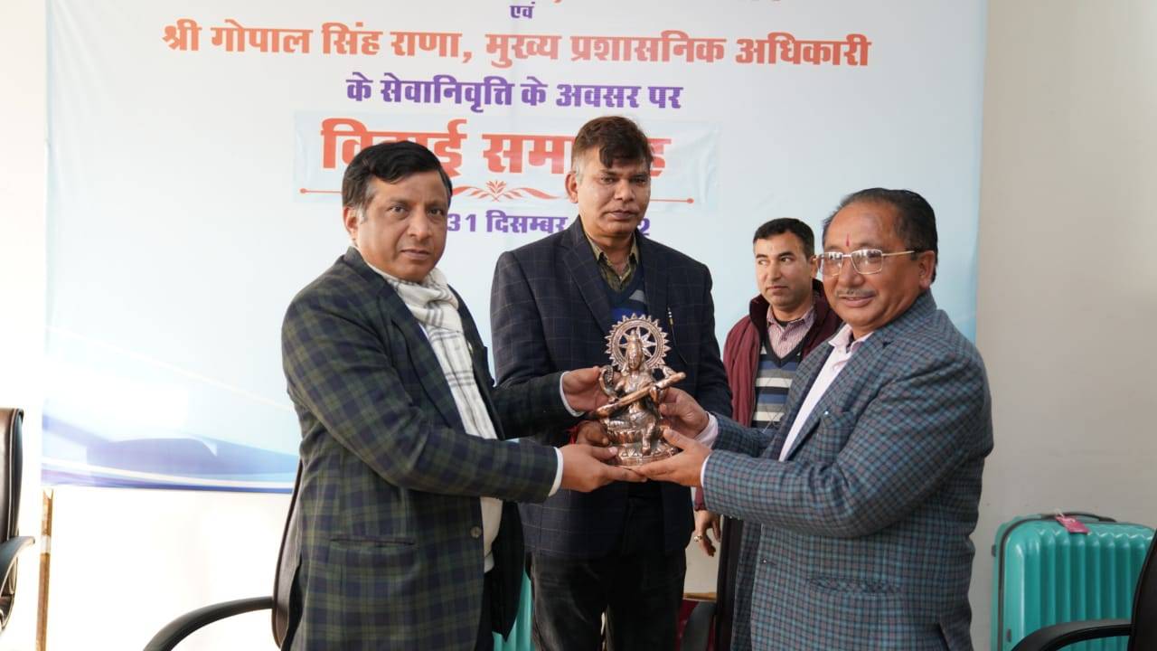मुख्य प्रशासनिक अधिकारी गोपाल सिंह राणा ने भी अपने सेवाकाल के अनुभवों को साझा किया। उन्होंने सेवाकाल के दौरान साथ कार्य करने वाले सभी अधिकारियों एवं कार्मिकों का भी आभार व्यक्त किया।