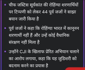 रोहिंग्या मामला: CJI सूर्यकांत पर दबाव बनाने की कोशिश को 44 पूर्व जजों ने लिया आड़े हाथ, बताया बदनाम करने की चाल