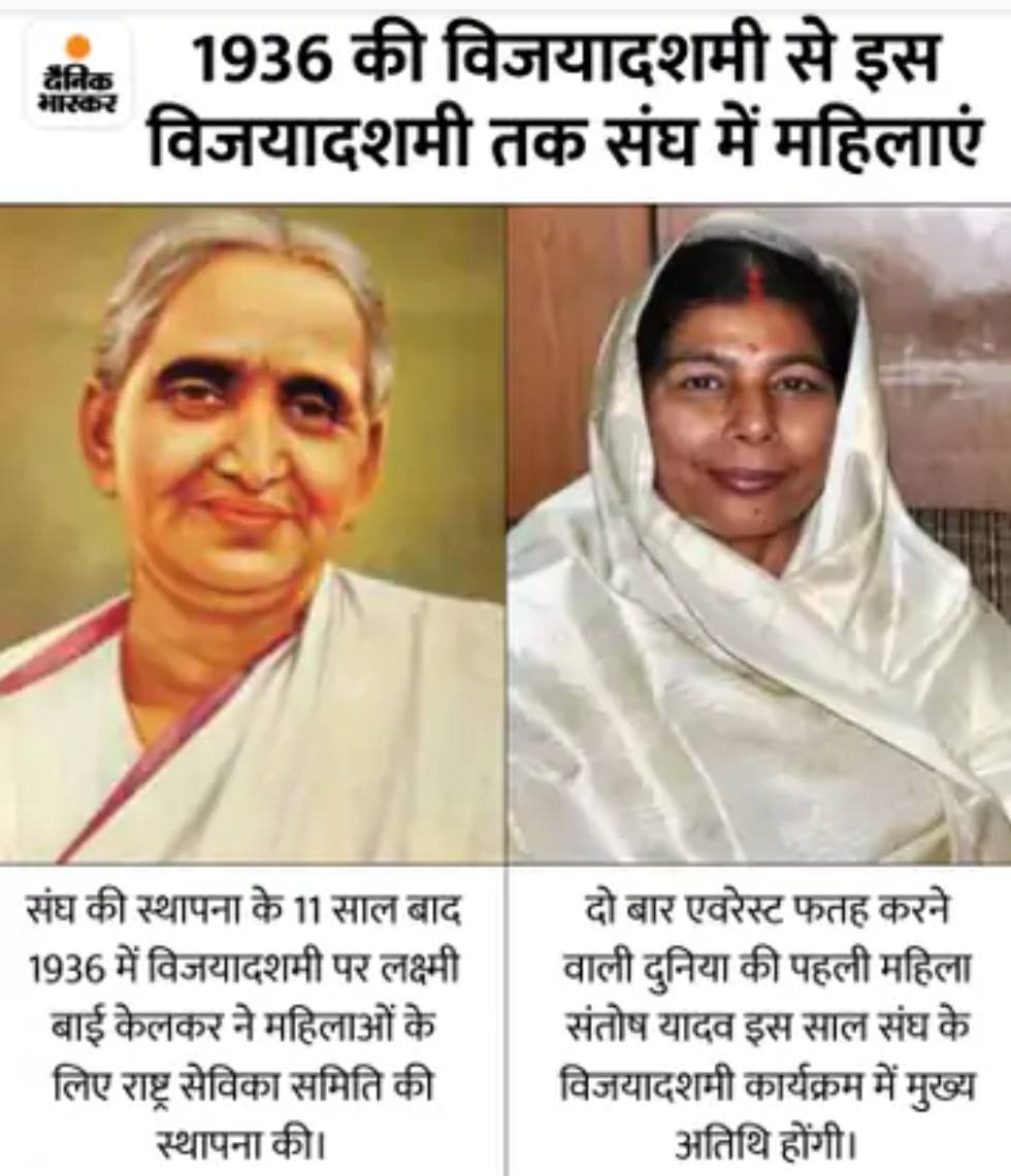 संघ ने पर्वतारोही संतोष यादव को अपने कार्यक्रम में मुख्य अतिथि बनाया है। कुछ हासिल करने वाली महिलाओं की उपस्थिति सुशिक्षित समाज का हिस्सा रहा है और डॉक्टर हेडगेवार के समय से ही यह संघ के कामों में प्रेरणा का जरिया रहा है। तब अनुसियाबाई काले हमारे कार्यक्रम में मौजूद रही थीं। तब की इंडियन वुमंस कॉन्फ्रेंस की चीफ राजकुमारी अमृत कौर भी हमारे शिविर का हिस्सा बनी थीं। दिसंबर 1934 में भी चीफ गेस्ट महिला थीं और यह तब से ही चला आ रहा है। इमरजेंसी के बाद अकोला में हुए संघ के कार्यक्रम में भी महिला चीफ गेस्ट थीं। उस विजयादशमी कार्यक्रम में औरंगाबाद की कुमुदताई रांगेनकर मुख्य अतिथि थीं।”
