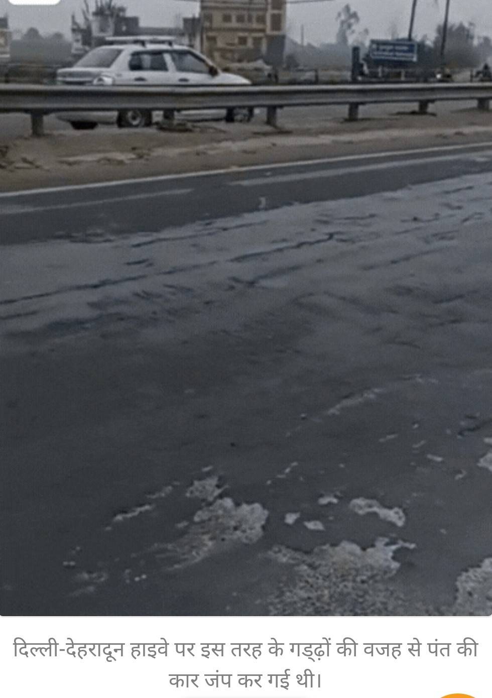 दिल्ली-देहरादून हाइवे पर इस तरह के गड्ढ़ों की वजह से पंत की कार जंप कर गई थी।