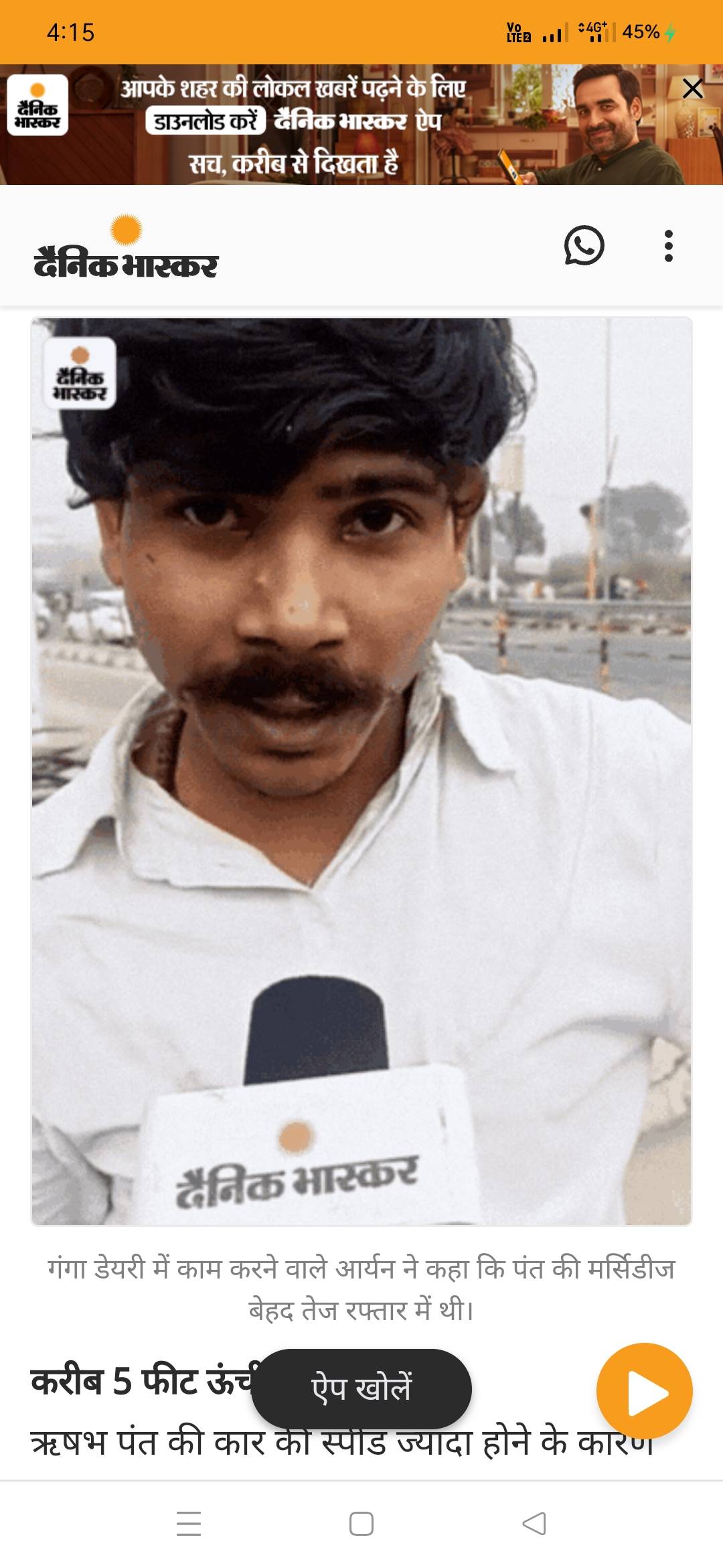 गंगा डेयरी में काम करने वाले आर्यन ने बताया कि सुबह के 5:15 बज रहे होंगे। मैं गेट पर ही था, इतने में तेज ब्लास्ट की आवाज सुनाई दी। बाहर निकलकर देखा तो एक कार जल रही थी। भागते हुए उसके पास पहुंचा, देखा तो ऋषभ पंत कार से निकलकर बाहर पड़े थे। वे काफी घायल थे। पूरा शरीर छिल गया था, कपड़े फटे थे। शॉल जैसा कुछ ओढ़े बाहर बैठे थे।