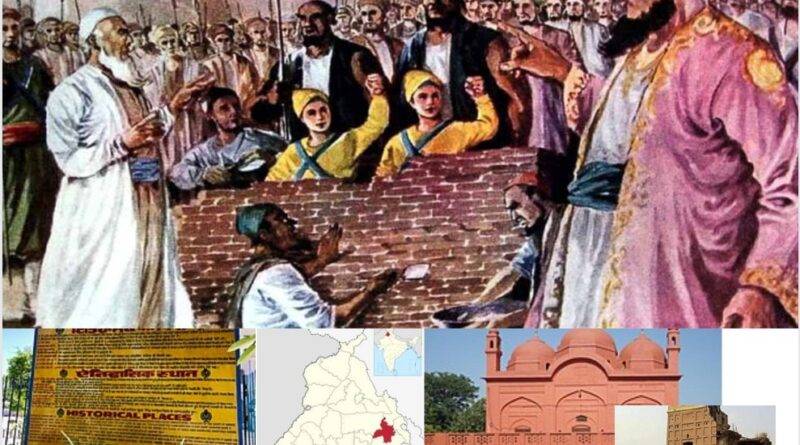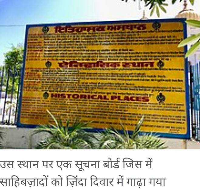 उस स्थान पर एक सूचना बोर्ड जिस में साहिबज़ादों को ज़िंदा दिवार में गाढ़ा गया