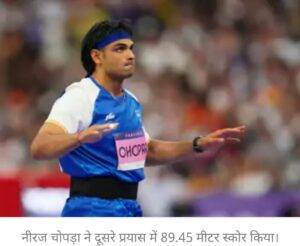 भारत के स्टार भाला फेंक एथलीट नीरज चोपड़ा पेरिस ओलंपिक में गोल्ड मेडल से चूक गए। फाइनल में नीरज 89.45 मीटर की दूरी के साथ दूसरे स्थान पर रहे थे जो उनका सीजन बेस्ट था, लेकिन पाकिस्तान के अरशद नदीम ने 92.97 मीटर भाला फेंक पहले स्थान पर गोल्ड मेडल जीता।