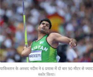 टोक्यो ओलंपिक के स्वर्ण पदक विजेता भारतीय एथलीट नीरज चोपड़ा पेरिस में अपना प्रदर्शन नहीं दोहरा सके और उन्हें रजत पदक से संतोष करना पड़ा। पाकिस्तान के नदीम ने अपने दूसरे प्रयास में 92.97 मीटर का रिकॉर्ड थ्रो कर स्वर्ण पदक अपने नाम किया। वहीं, नीरज चोपड़ा ने दूसरे प्रयास में 89.45 मीटर के सर्वश्रेष्ठ थ्रो के साथ रजत और ग्रेनाडा के एंडरसन पीटर्स 88.54 मीटर के सर्वश्रेष्ठ थ्रो के साथ तीसरे स्थान पर रहे। नीरज और नदीम ने फाउल के साथ शुरुआत की थी, लेकिन पाकिस्तान के नदीम ने दूसरे प्रयास में ओलंपिक का रिकॉर्ड तोड़ते हुए अपनी दावेदारी मजबूत कर ली। नीरज ने भी दूसरे प्रयास में अपने इस सत्र का सर्वश्रेष्ठ प्रदर्शन किया, लेकिन वह नदीम से आगे नहीं निकल सके।