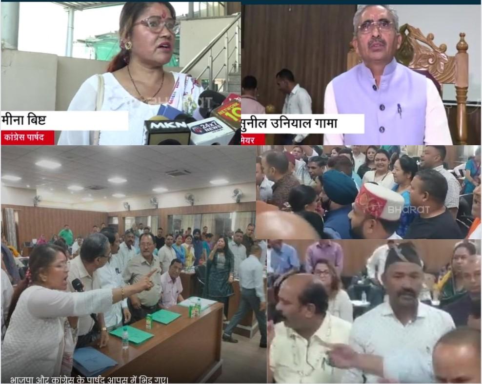 देहरादून नगर निगम बोर्ड बैठक में जबरदस्त हंगामा, राज्य आंदोलन में बलिदान देने वाले को पत्थरबाज कहने पर भिड़े पार्षद