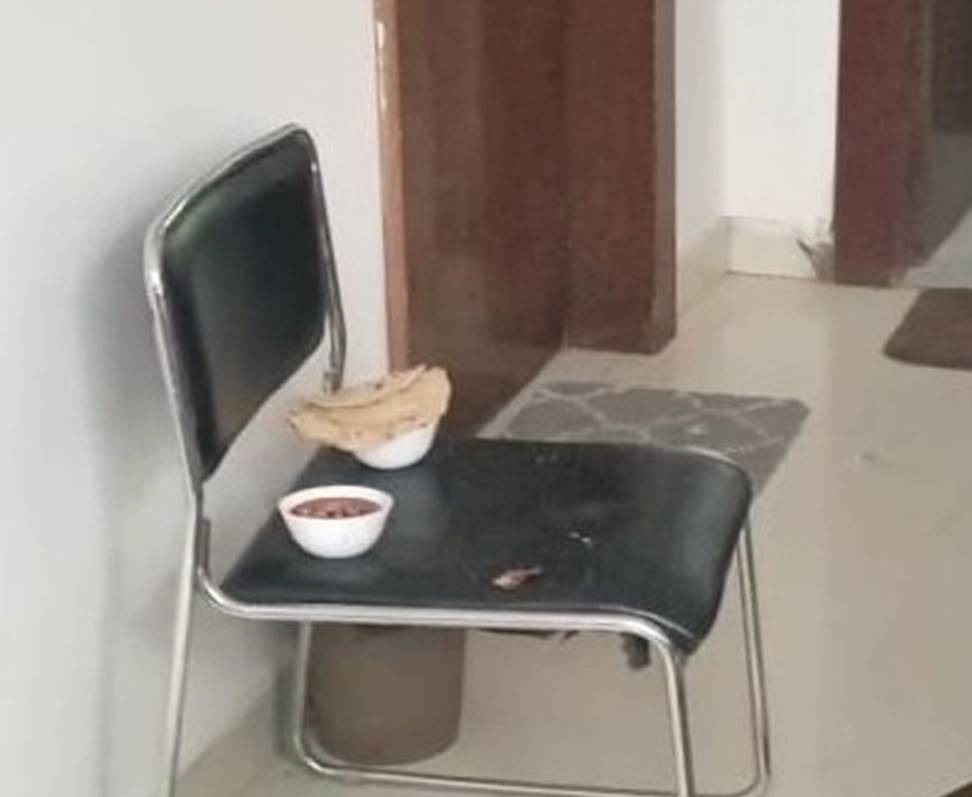 दूसरी आरे एक कुर्सी पर उसके लिए लाई गई दाल-रोटी रखी गई थी।