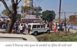 लक्सर 31 जनवरी 2025: हरिद्वार के लक्सर में दिनभर तनावपूर्ण वातावरण रहा. जगह – जगह लोगों की भीड़ पुलिस से उलझती दिखी, मगर पुलिस प्रशासन की कठोरता के चलते खानपुर विधायक उमेश कुमार के कार्यालय पर बड़ी बैठक नहीं हो पाई. हाल ये रहा कि पुलिस लाठी चार्ज तक हुआ. गुस्साई भीड़ ने पुलिस पर ही पथराव कर डाला.इससे खानपुर विधायक उमेश कुमार समेत सैकड़ों पर मुकदमा हुआ है। उपद्रव समेत अन्य गंभीर धाराओं में कोतवाली लक्सर एवं थाना खानपुर में मुकदमे लिखे गये हैं. हरिद्वार के वरिष्ठ पुलिस अधीक्षक प्रमेंद्र सिंह डोबाल ने पुलिस पर पथराव करने वालों के विरुद्ध कठोर कारवाई करने की चेतावनी दी है.