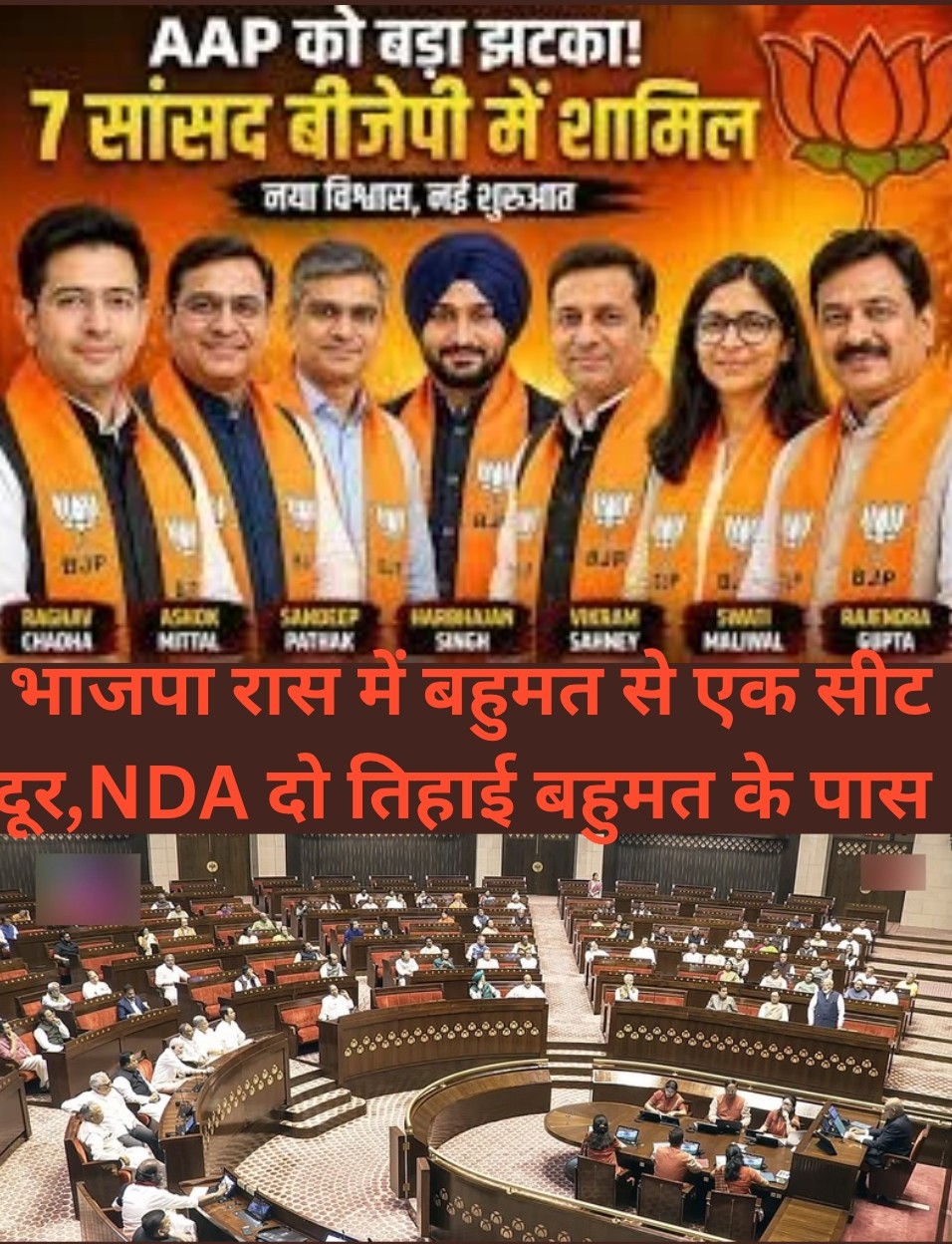 राज्यसभा के सभापति ने ‘आप’ के एक गुट के BJP में विलय स्वीकार कर लिया है.भाजपा के राज्यसभा सांसदों की संख्या बढ़कर 113 और बहुमत के आंकड़े 123 से केवल एक सीट पीछे रह गई है.वर्ष 1988 के बाद पहली बार कोई दल अकेले दम पर राज्यसभा में बहुमत के करीब पहुंचा है, जिसमें भाजपा अग्रसर है.