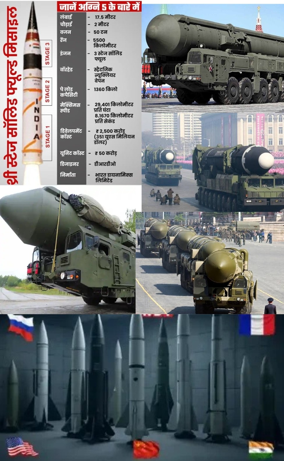 - विशेषताएं: रोड-मोबाइल, सॉलिड-फ्यूल ICBM। 10 MIRVs तक ले जा सकती है। इसकी सटीकता और गतिशीलता इसे पहली स्ट्राइक से बचाने में मदद करती है।