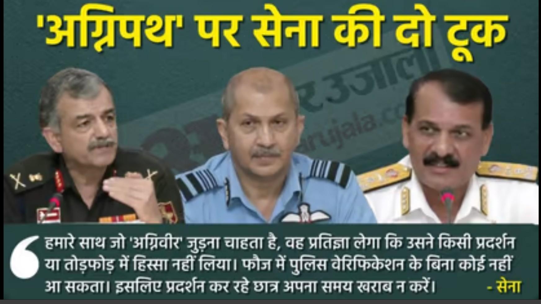 सेना ने कहा है कि उपद्रवियों को किसी सूरत में अग्निवीर बनने का मौका नहीं दिया जाएगा